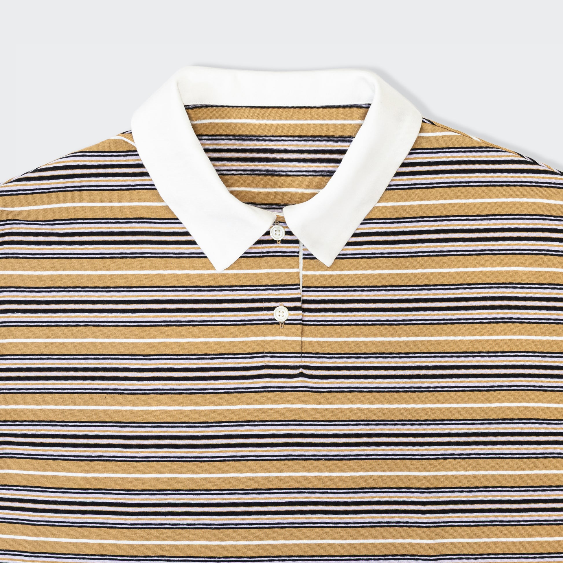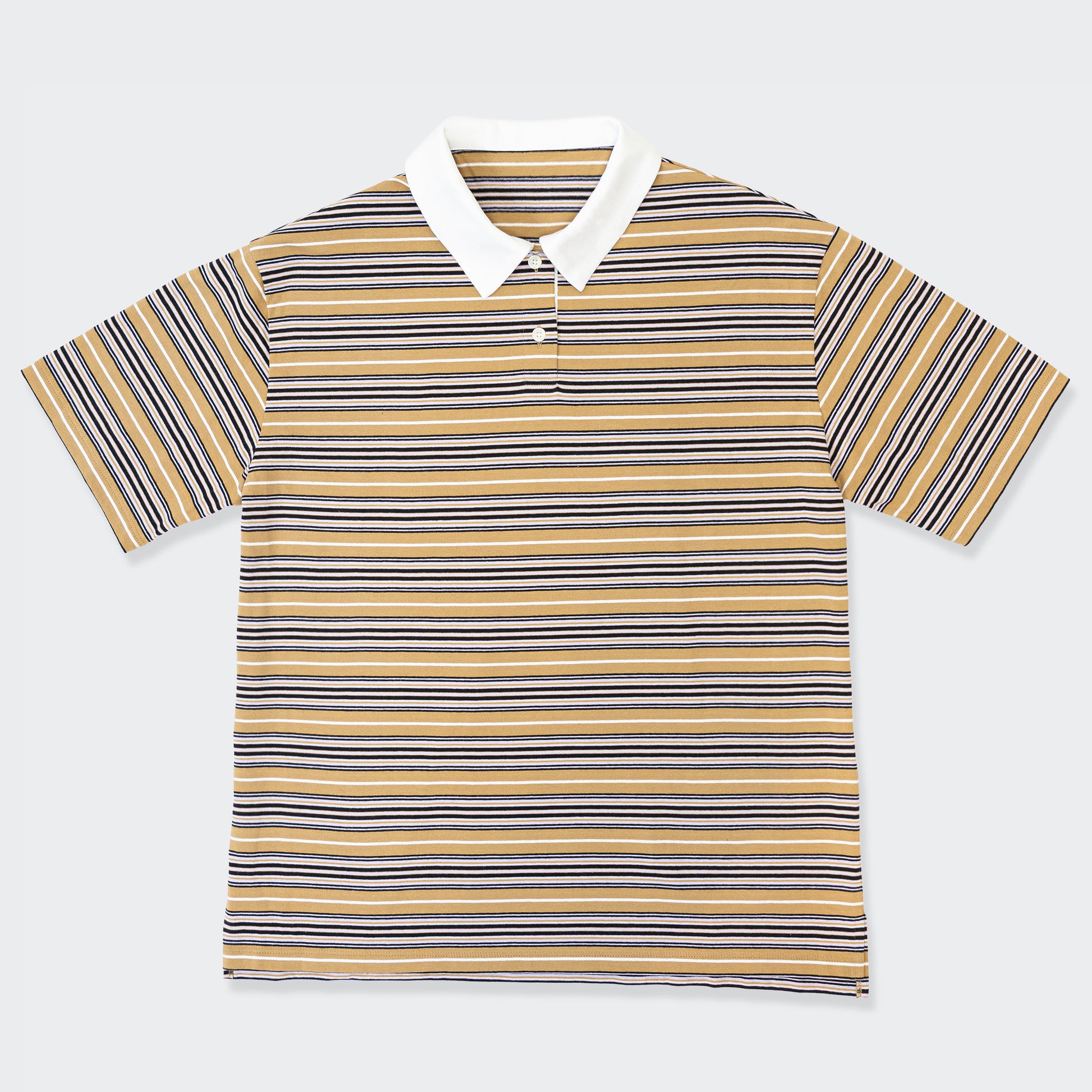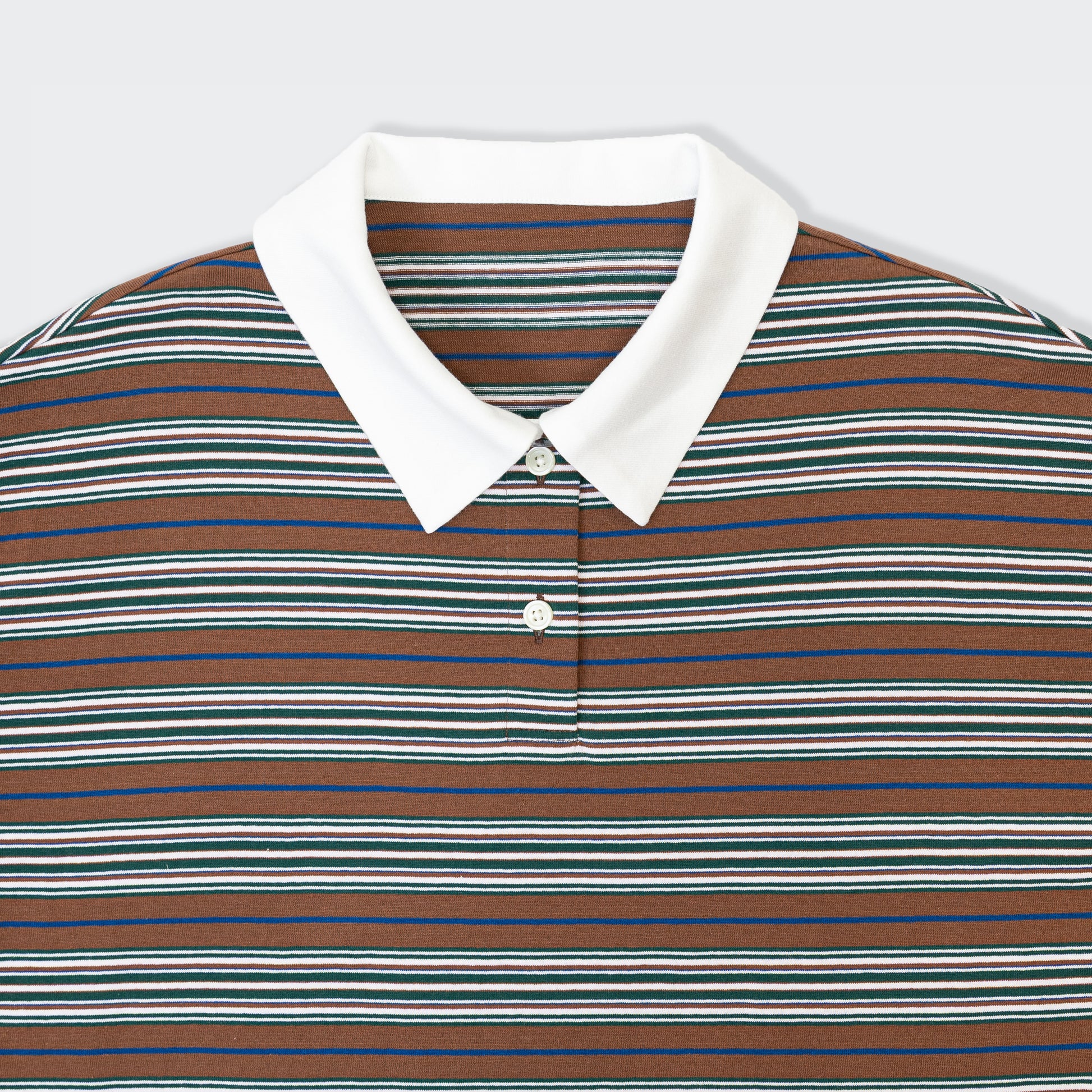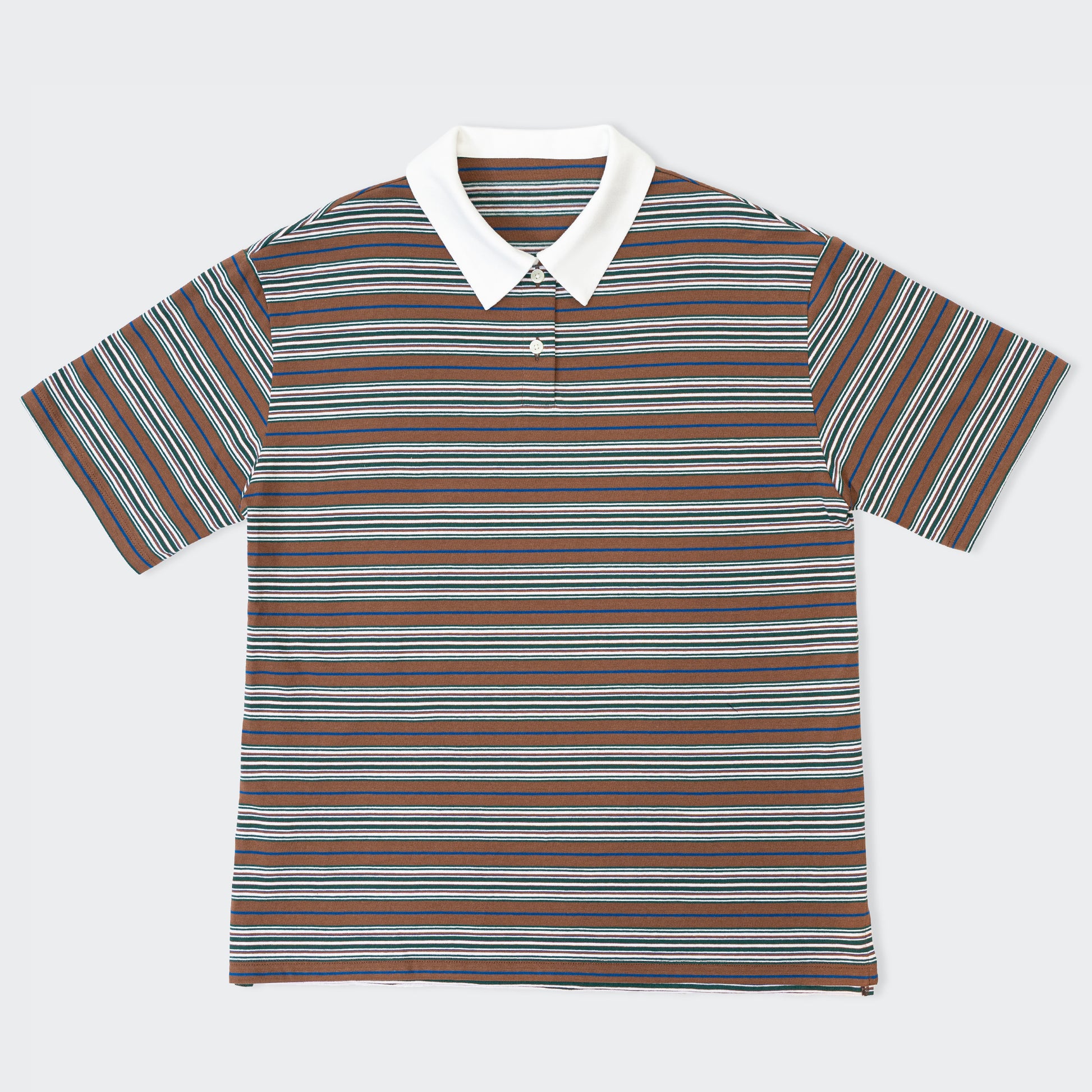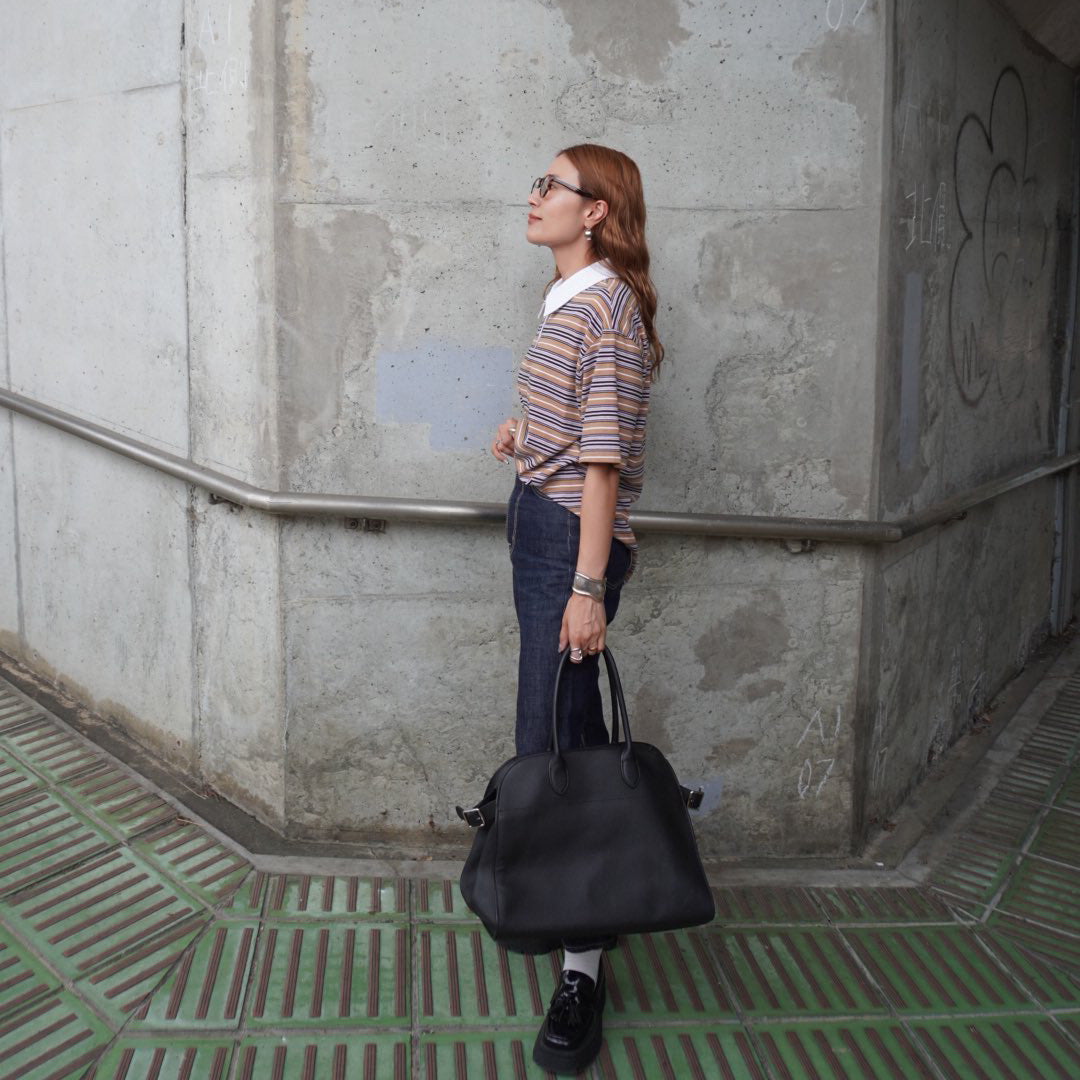 きちんと感とリラックスをひとつに、ポロ衿ボーダーロングシャツ。