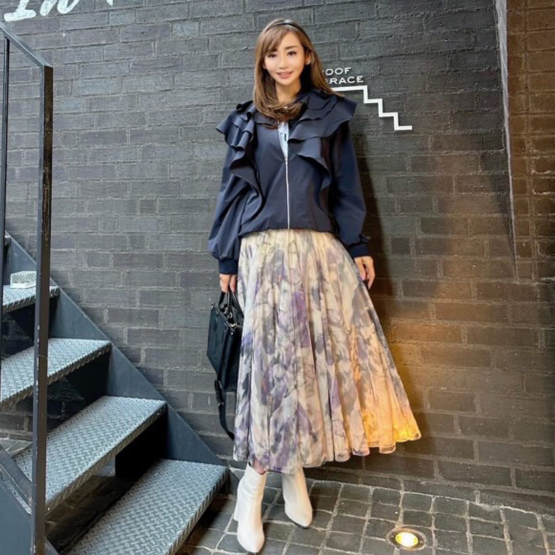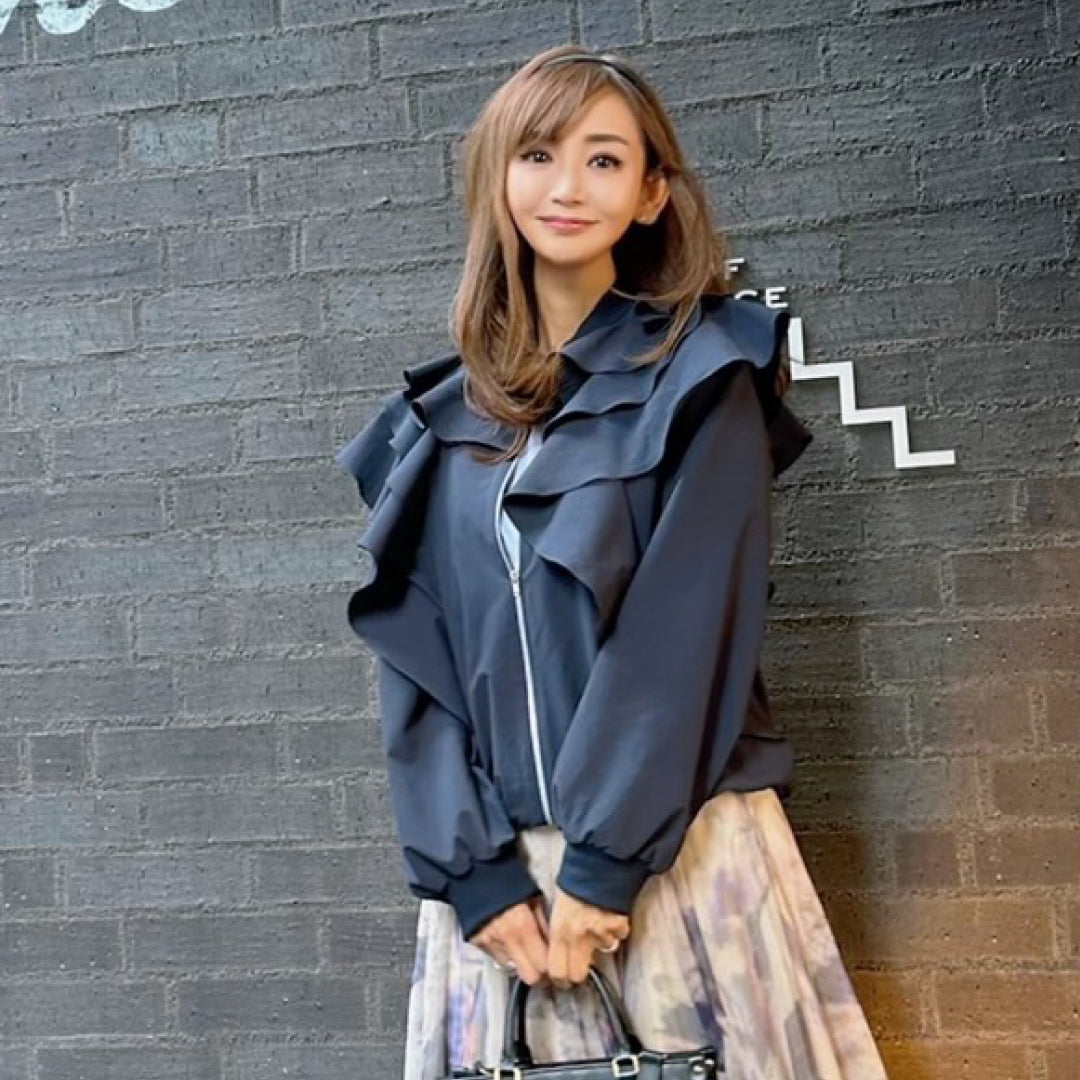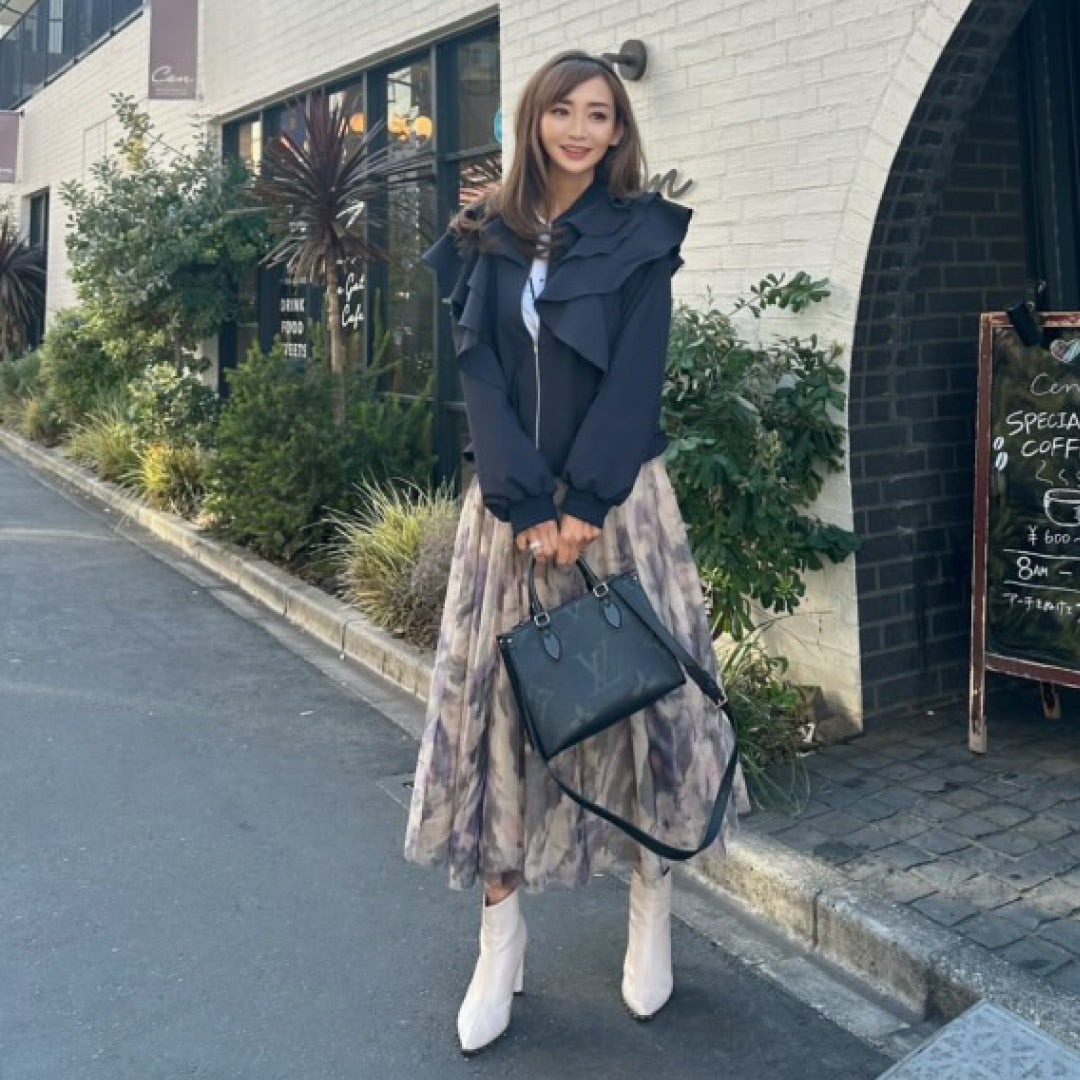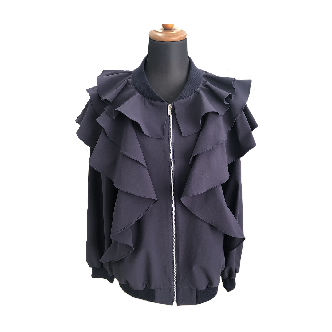 華やかなフリルをあしらい、羽織るだけで上品な印象を与えるブルゾン。