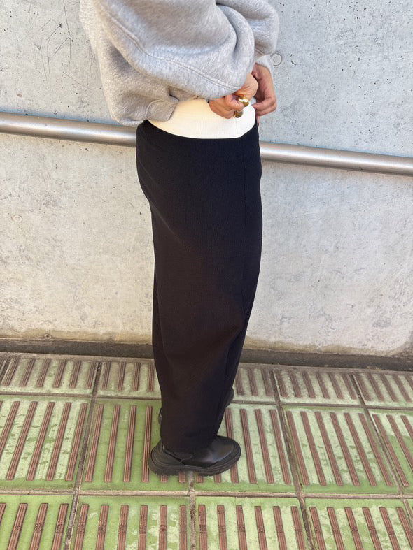 伸びのよいリブ素材が腰まわりに程よくフィットし、ストレスのない履き心地に。